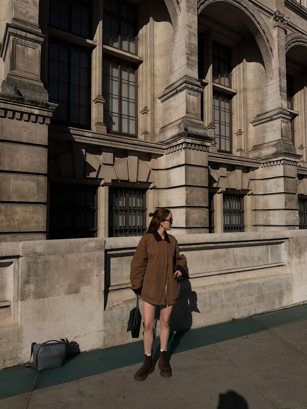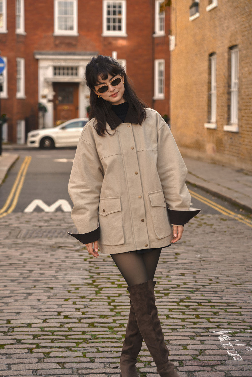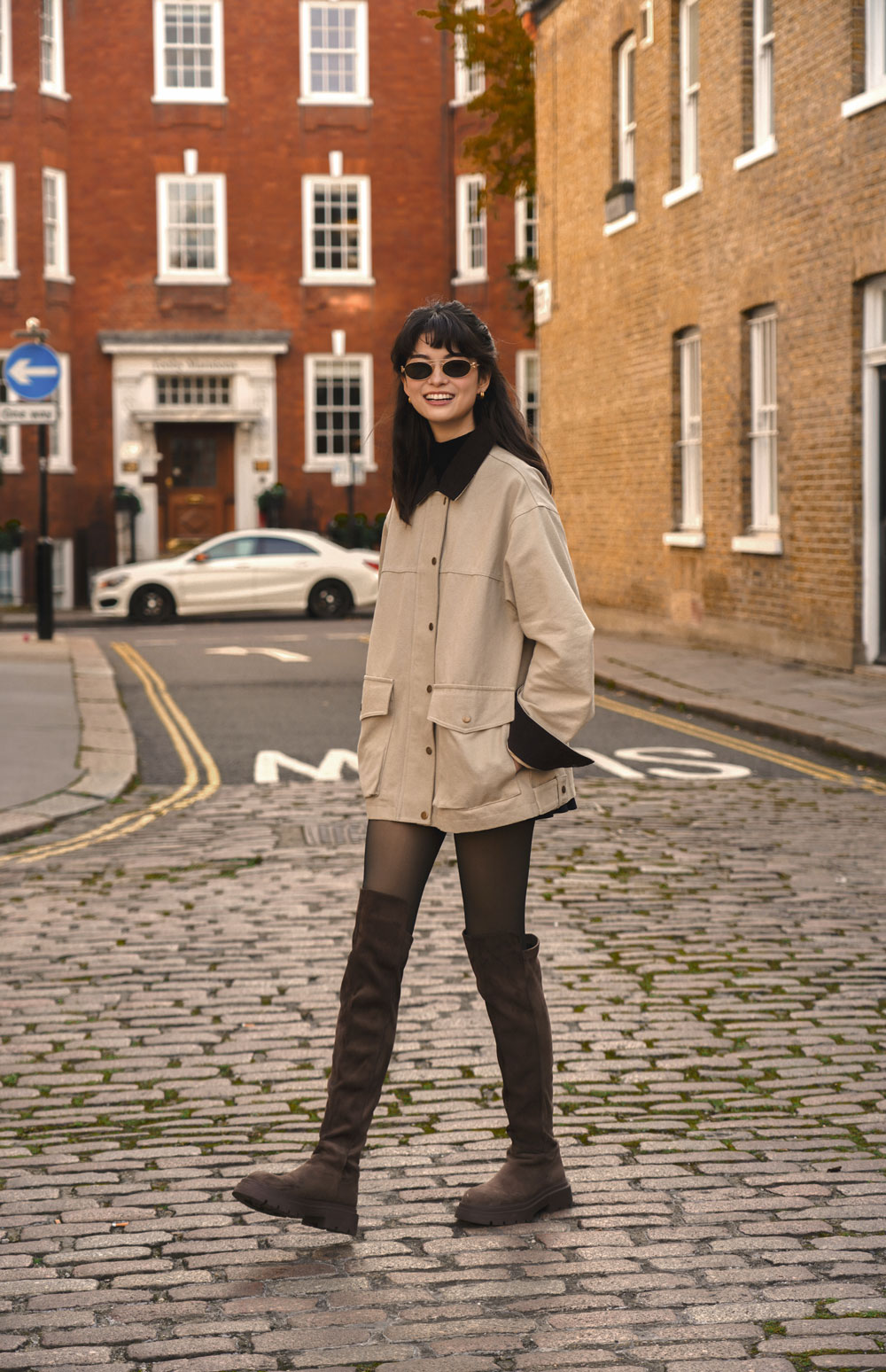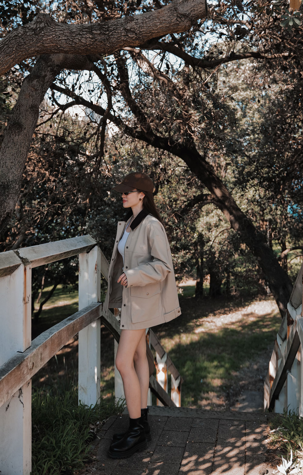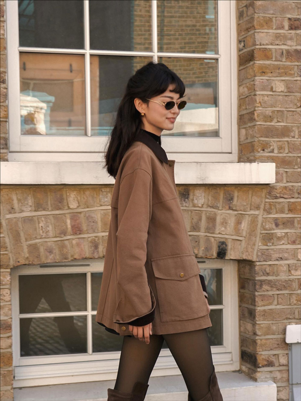 เสื้อแจ็คเก็ตผ้าพรีเมียมคอตตอน 100% ฟอก ทรงโอเวอร์ไซส์ใส่ง่าย สไตล์มินิมอลเท่ๆ มีดีเทลคอปกและปลายแขนผ้า corduroy เพิ่มมิติให้ลุคดูพรีเมียมขึ้นไปอีกขั้น พร้อมกระเป๋าหน้าและกระเป๋าข้างสองฝั่งใช้งานได้จริง กระดุมและซิปเกรดพรีเมียม แขนมีการออกแบบตัดเย็บให้โค้งสวยเวลาใส่